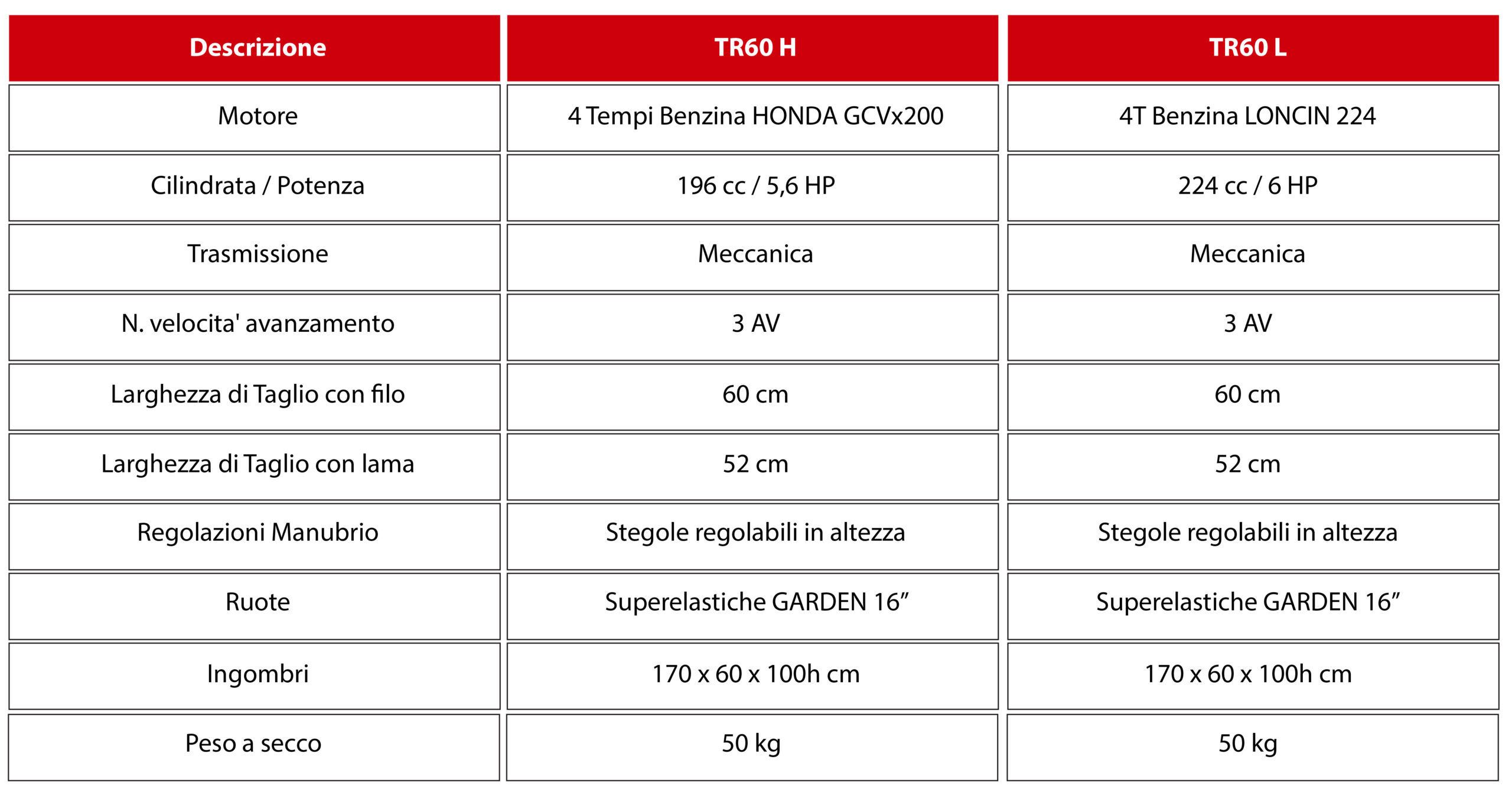 Il Decespugliatore a ruote Mono Testina TR 60 TEKNA è la macchina ideale per la manutenzione del verde lavorando in modo efficiente ed ergonomico. Il Decespugliatore a ruote TR 60 TEKNA con larghezza di lavoro di ben 60 cm, agevola e velocizza le operazioni di pulizia di erba su superfici come aree verdi, parchi, giardini ma anche in agricoltura per eliminare le operazioni di diserbo e preservare le colture di agrumeti, uliveti, frutteti, vigneti etc. La sua conformazione compatta e leggera lo rende accessibile anche negli spazi ristretti e con il NUOVO manubrio orientabile 45°a destra e 45°a sinistra consente di lavorare agevolmente sotto la chioma degli alberi nei frutteti, pulire i filari dei vitigni, pulire i bordi di marciapiedi, muri etc. Può sicuramente essere l’alternativa ai decespugliatori disponendo però di più potenza e larghezza taglio, senza fatica per l’operatore. Infatti la macchina è equipaggiata di ruote da 16” ed è totalmente semovente. È equipaggiata con un potente motore a benzina 4T e di un cambio a 3 velocità per meglio adattarsi alle condizioni di taglio. La testina di taglio può ospitare 3 fili doppi di nylon da ɸ 6 mm max. per una migliore efficacia. Può essere dotato di un “Kit Lama” costituito da un riparo metallico e di una Lama in acciaio da 52 cm che sostituisce la testina a filo, in quelle situazioni di taglio erba più gravoso. Tutto ciò si traduce in velocità di lavoro in modo sicuro ed ergonomico!