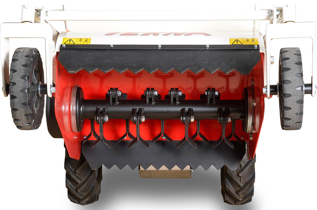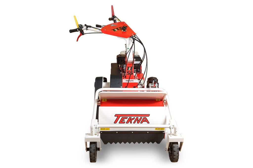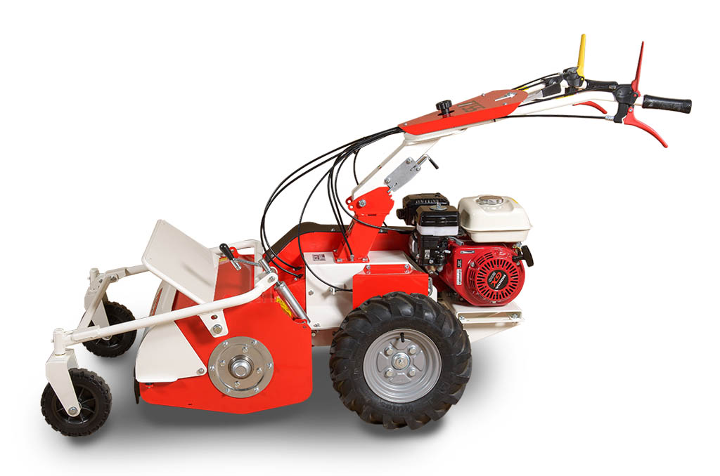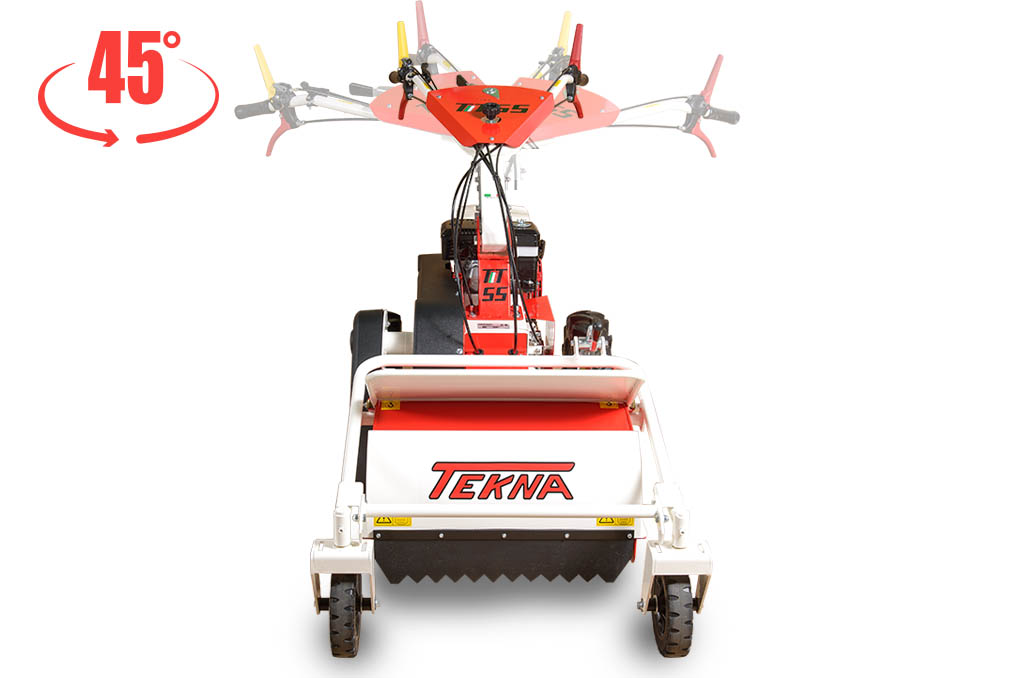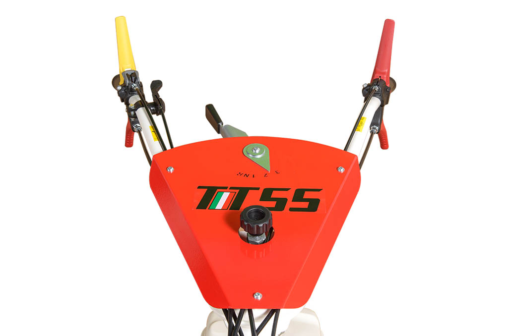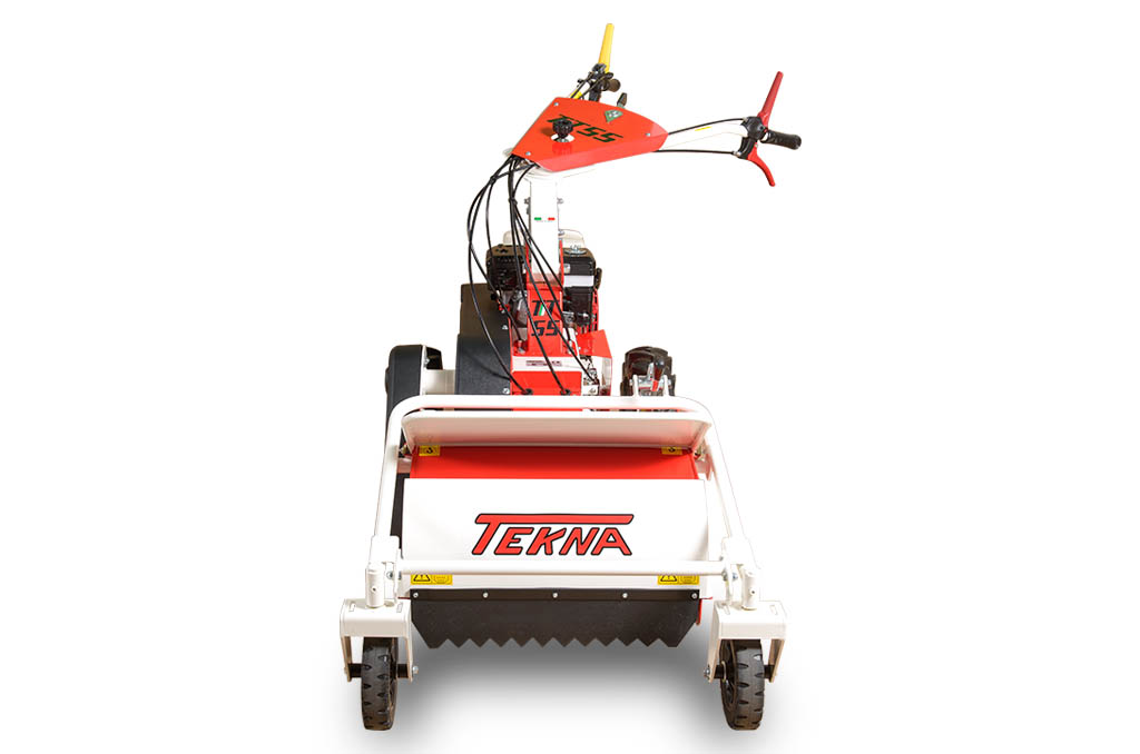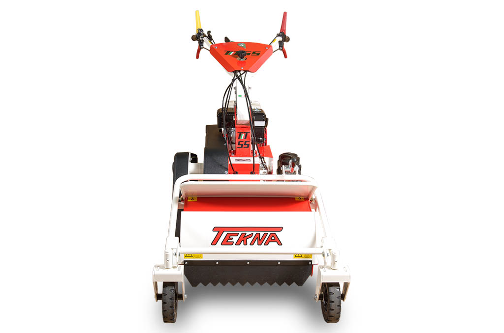 Il Trinciaerba TT 55 è una macchina ad uso professionale adatta per operazioni di sfalcio in tutte quelle condizioni di difficile accesso alle normali macchine falciatrici e/o trattori, nei vigneti, nei terreni in contropendenza e/o terrazzamenti, per la pulizia di terreni ospitanti impianti fotovoltaici, etc. È una macchina robusta, con una larghezza utile di taglio di 50 cm e Flagelli a Y per sminuzzare al meglio erba, rovi e sterpaglie. Il nostro Trinciaerba TT 55 è equipaggiato con ruote TRACTOR da 4.00-8” di diametro (410 mm), e per avere una maggiore trazione e stabilità sicura sia in forte pendenza che in situazioni di terreno fangoso e/o sabbioso. È dotata di trasmissione meccanica con un robusto riduttore ad ingranaggi in bagno d’olio a 3 AV+1RM velocità, con blocco differenziale interno per avere le due ruote motrici sempre in trazione e di un motore 4 Tempi a Benzina HONDA. È dotata di stegole ergonomiche con leve di governo e comando marce e possibilità di regolazione in altezza e rotazione a destra e sinistra.